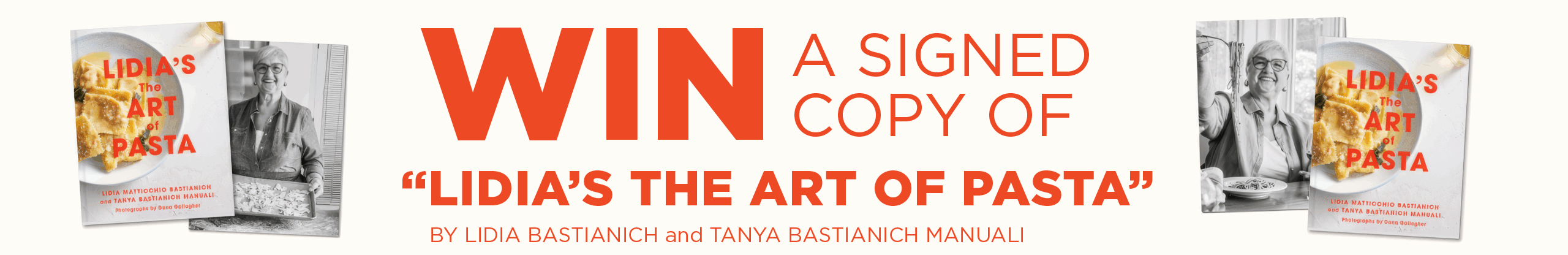 Enter for your chance to win one (1) of five (5) signed copies of “Lidia’s The Art of Pasta”, the new cookbook by best-selling author and Emmy Award-winning television host Lidia Bastianich!